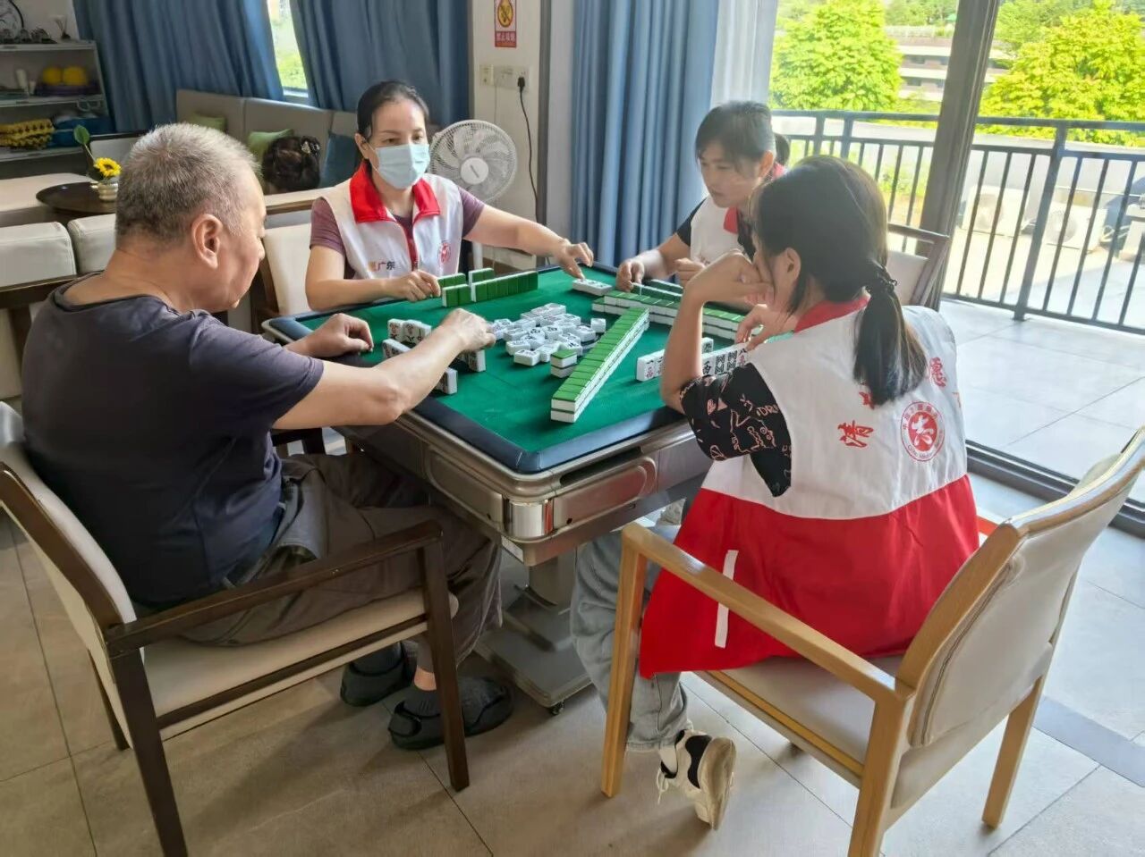 对于那些不太熟悉麻将规则的长者,志愿者们更是耐心细致地讲解,从如何拿牌到如何出牌,一步步引导他们融入这个欢乐的大家庭。