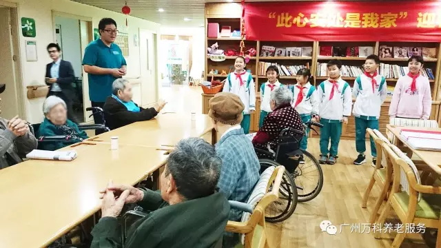 大年十二,黄埔城花【智汇坊社区长者照料中心】门前屋后仍洋溢着浓浓着春节装饰氛围,探亲的家属们满怀笑容地陆续而来,其中最引人注目的是长者方伯的小孙女,她今天特意邀请了几位小学同学一起过来,戴上整整齐齐的红领巾,一同为长者们拜年、祝福而来。