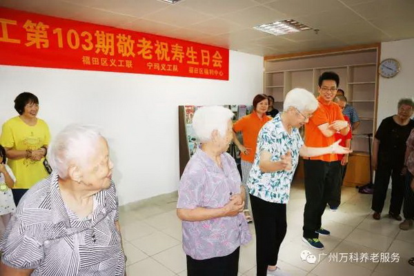 2017年6月18日下午三点钟,福田区福利中心迎来了第103期敬老祝寿生日会,区义工联、宁玛义工队的近30位义工朋友如约而至,为本次福利中心10位寿星老人带来了精心准备的节目和生日礼物,现场气氛热烈,近40位中心老年人一同前来现场为黄官招、刘明、林佩芳、张俊明、刘剑华、谢碧贞、张惠卿、徐玉珍、袁荫松、尹志光庆生。