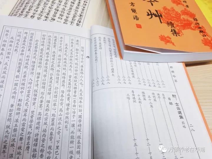 初冬的一次耆老雅集相约,这位爱凑热闹的快活大老爷子自然也少不了。雅集的规模虽不算大,但座中不乏有好几位国家级、省级的资深教授学者,陆叔一登场,就旁若无人地用炮仗般大的广州话向大家嚷道:“读过我的最新伟大诗篇未”? 言讫就兴冲冲地从腰间掏出几本红册子,一边恭恭敬敬分发给大家,一边在超级吹嘘中又挟带着几句自损的谦辞,冲着老顽童的这股前倨后恭的可爱劲,现场气氛顿时笑呵呵地热烈起来。吹归吹,各自翻开册子一瞧,只见一行行直式的繁体字句,从右到左的阅读排版,清光满笺的精美句子,除了诗、词、联外,还有罕见的四六骈文,洋洋洒洒辞采华瞻,就算不认得他的人,也不敢轻看这小册子的文化内涵。正在交流中,陆叔滔滔不绝的言谈表情中忽然掠过一丝狡黠,故作惊讶地对身边一位长者哂道:“兄台,我的书是从右读到左的,你怎么从左往右读?”大家都哄然大笑起来。