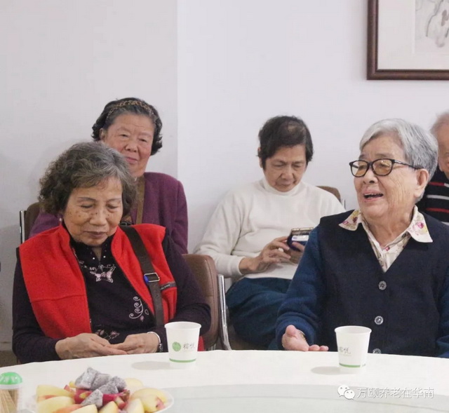 我们举办了新春茶话会。老人们齐聚一堂,大家吃着零食聊着天,兴致高昂得一起唱歌、跳舞。一片欢声笑语,其乐融融。