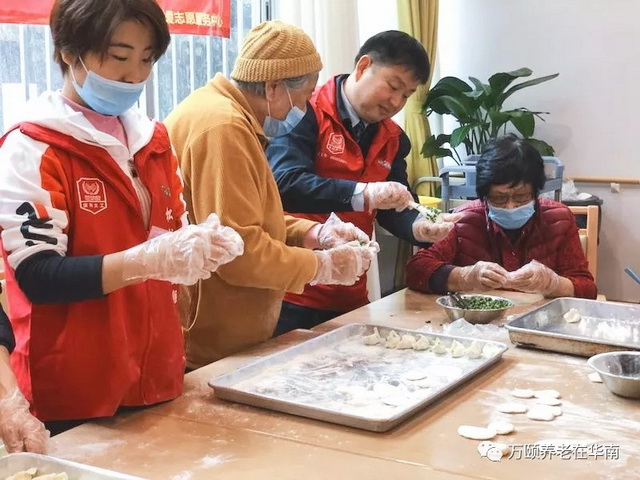 新年来临,门口大红灯笼已经挂起。今天的智汇坊很热闹,因为今天咱们工作人员和院内长者,还有社区长者,大家一起包饺子啦!韭菜馅、香菇馅、玉米馅……咱们的饺子种类可是非常丰富呀,包完了以后,大家还一起分享了自己的劳动果实,自己包的饺子非常美味!