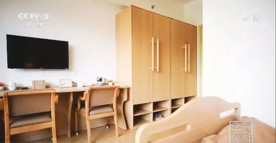 在床的选用上,选用护理床还是自理床,我们做了较长的讨论,最后决定大部分使用护理床,主要考虑为老年人生命周期的一个身体变化,过程换床的不便。少量自理床从外观上更多地类家居床,,但增设了护栏,一方面帮助老人起身,另一方面可以防止老人夜间睡觉时坠落的情况。