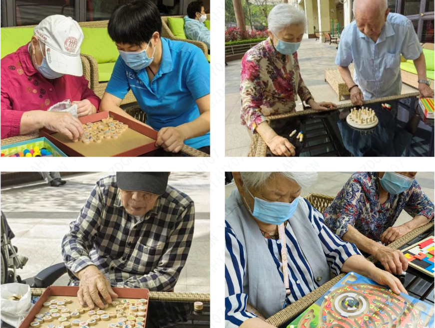 活动主要面向护理型长者,社工会根据护理型长者的生理状况和心理特征进行活动内容的设计。由于失能、失智长者普遍身体较为虚弱、反应较慢,活动设计的类型就以棋牌类、益智游戏、健身类为主,目的是维持与提升护理型长者的身体机能与日常活动能力。与此同时还可以促进脑部活动,预防失智,并提升护理型长者的人际互动,提升晚年生活的充实感与幸福感。