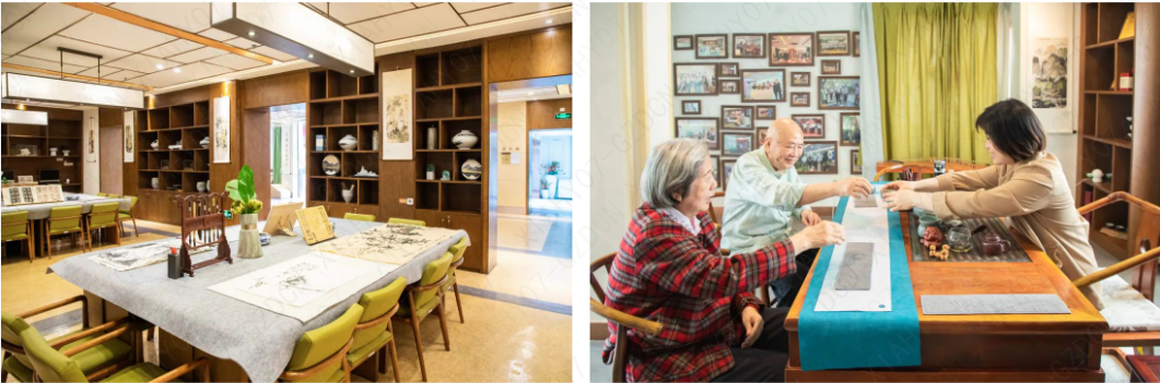 榕悦·滨江中以新中式风格为主调,运用“诗词歌赋、曲调文说”作为辅助装饰,搭配国画书法作品营造典雅书香、修身养性的氛围。生活照料采用万颐养老独创的360°全周期长者照料服务体系,涵盖“住、乐、食、护、康、医”六大养老服务模块,贯穿独立生活、半自理、护理长者老龄生活的全生命周期,依据长者身体和心理的变化,制定照护方案,为长者营造安适舒心的晚年生活。
