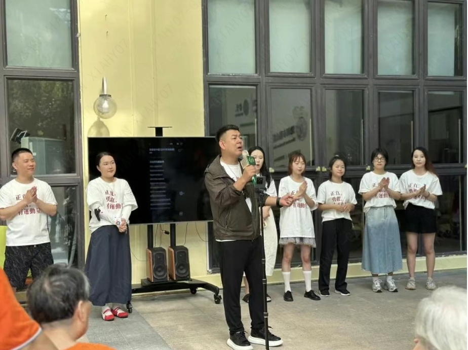 手势操余韵未散,一场温馨的“小型演唱会”随即登场。志愿者们轮番登台,献唱经典与流行交织的歌曲——《我爱你中国》激昂深情,《茉莉花》婉转悠扬,还有耳熟能详的流行旋律,如清风拂面,吹进长者们的心田。