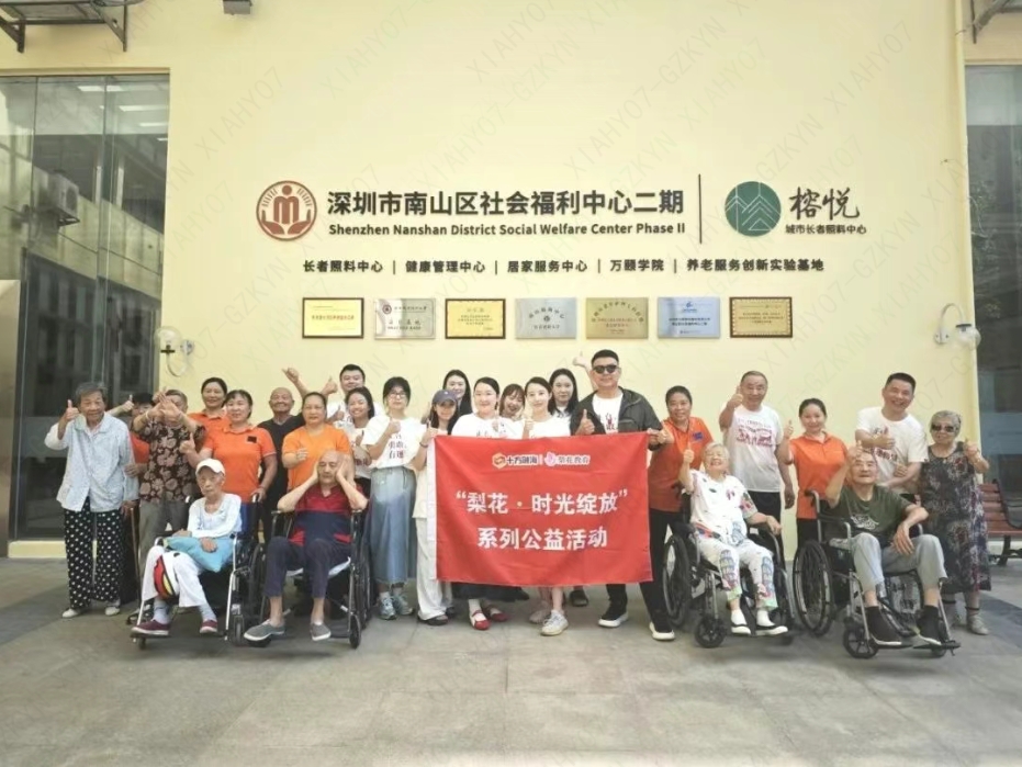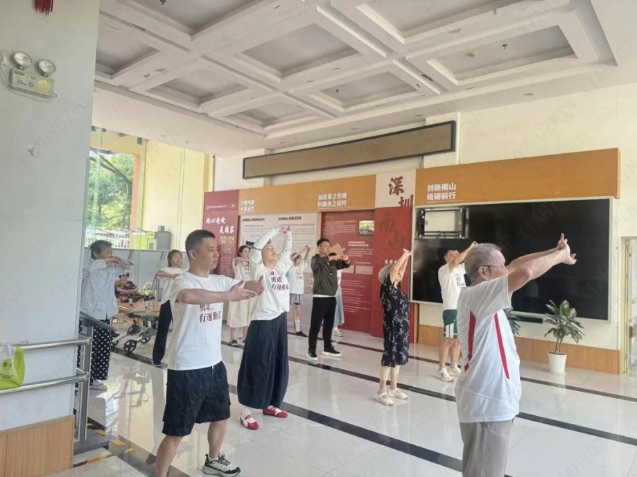 八月,一个充满欢声笑语的午后,深圳市南山区社会福利中心二期·榕悦的一楼三角区洋溢着别样的温暖与活力。十方融海梨花教育志愿者团队的年轻朋友们如约而至,带着满满的爱心与精心准备的节目,为院内护理型长者们带来了一场充满活力与温度的陪伴之旅。