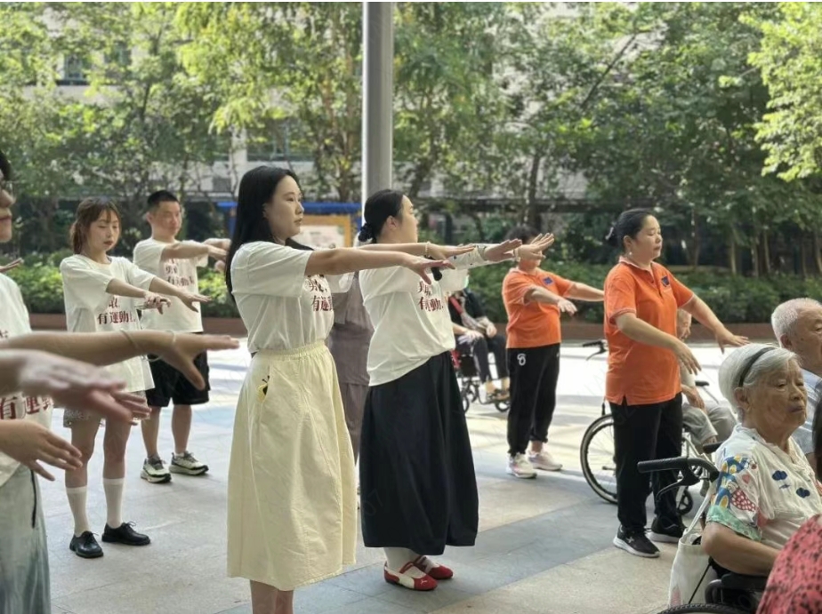 一伸一展,一拍一合,看似简单的动作,却在指尖的律动中传递着健康的理念与生命的活力。这不仅是一场身体的锻炼,更是一次心灵的唤醒——在互动中,温暖悄然流淌,笑容自然绽放。