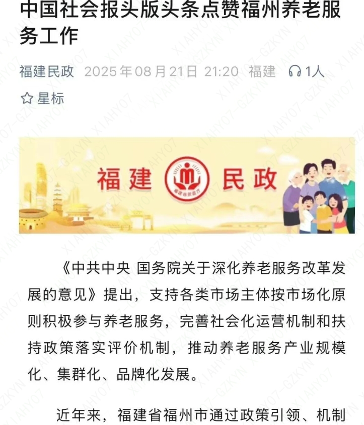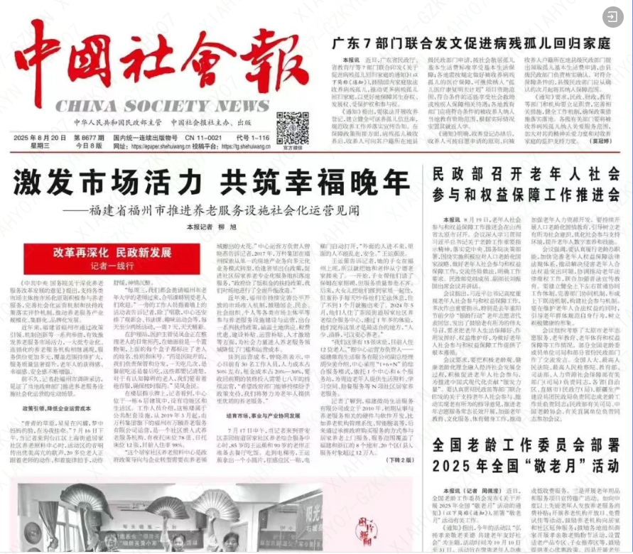 此次登上《中国社会报》头版,不仅是对万颐养老服务成果的肯定,更凸显了品牌在推动“福见康养”体系建设中的责任与担当。万颐养老始终以“让每一位长者幸福生活”为使命,通过打造70余张床位的嵌入式社区照护中心,覆盖日托、夜托、康复、文娱等全场景需求,成为福州乃至福建省养老服务的标杆品牌。