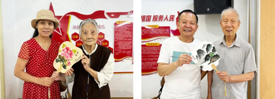 创作结束后,艺术家们将饱含心意的作品赠予长者,并合影留念。捧着这份独一无二的“艺术礼物”,长者们脸上洋溢着幸福的笑容,小心翼翼地将作品带回房间珍藏。