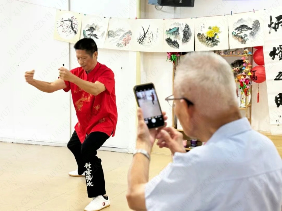 活动中段,还上演了一段温馨而精彩的“意外之喜”——擅长书画的叶师傅,在完成一幅山水佳作后,应长者热情邀请,现场展示了一套太极拳。只见他动作舒展、行云流水,刚柔并济、气韵贯通,举手投足间尽显文武兼修的风采。表演结束,现场掌声雷动,长者们纷纷竖起大拇指,将活动气氛推向高潮。