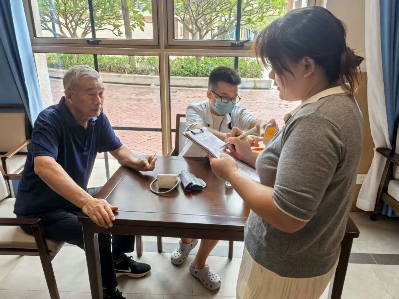 活动当日,晨光熹微,社区医生便携带专业血压计等医疗设备,满怀热忱地抵达清远·智汇坊。长者们在工作人员的细心引导下,井然有序地排起长队,静候测量。医生们手法娴熟,一边为长者们精准测量血压,一边耐心询问他们的日常饮食习惯、作息规律,以及是否有头晕、心慌等不适之感,关怀备至。