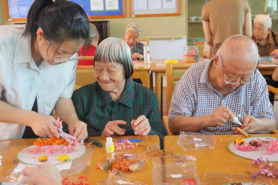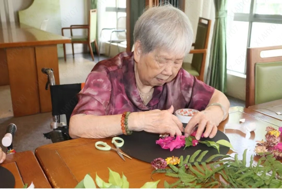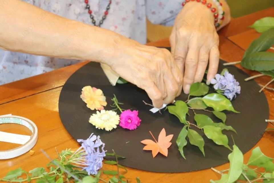 大家相互交流创作思路,分享手工技巧。经过精心制作,一个个充满创意的秋日花篮相继完成,每一件作品都承载着长者对秋日的独特理解与热爱。