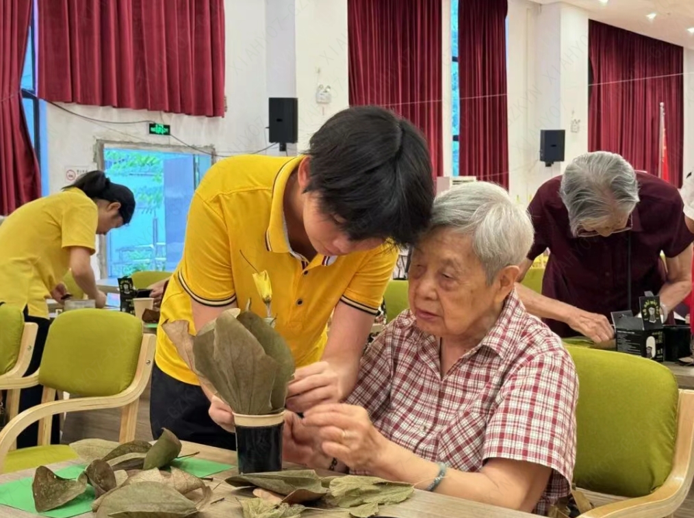 深圳市南山区社会福利中心二期·榕悦开展 “篮不住的秋日” 创意手工活动,长者们利用社工提前捡拾的秋日落叶,搭配粘土与纸杯制作秋日花篮。