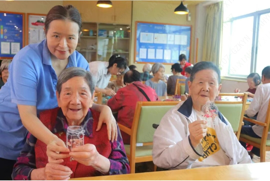 爷爷奶奶们捧着作品凑到镜头前,眼角笑出细纹,快门一响,开心瞬间被定格。