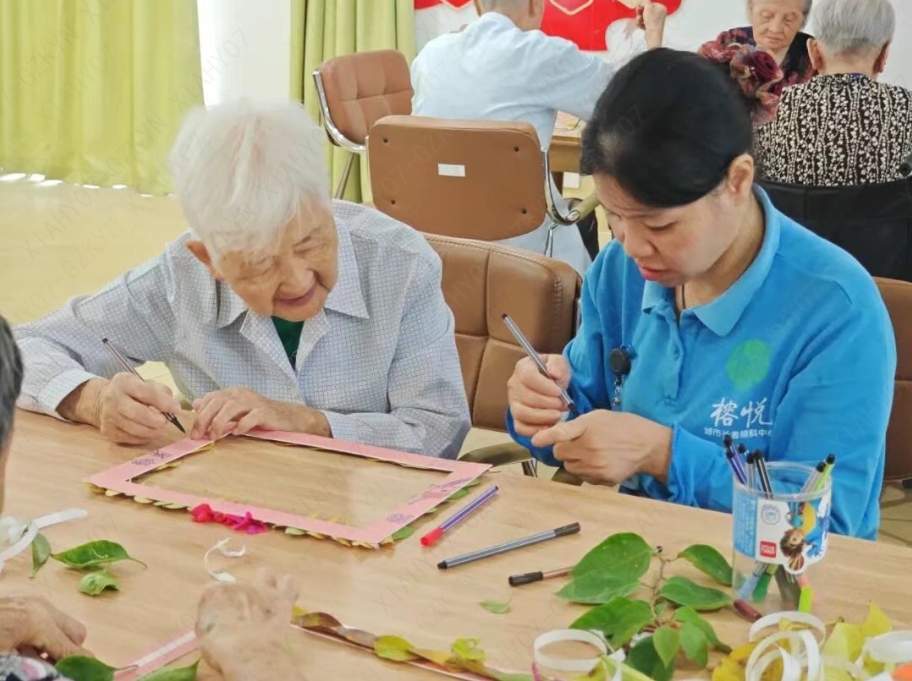 最终,一幅幅充满故事与情感的树叶画框在长者巧手下诞生。它们不仅装点了活动现场,更成为长者心中美好的回忆。