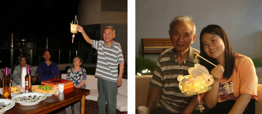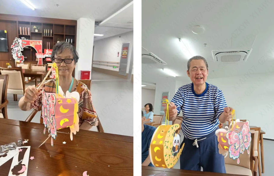 中秋临近,长者们制作精巧小灯笼,回忆起童年记忆:“小时候过中秋也做竹编灯笼,现在能再做一次,真像回到从前!”制作完成后,大家举着灯笼拍照留念,笑容如月光般温柔。