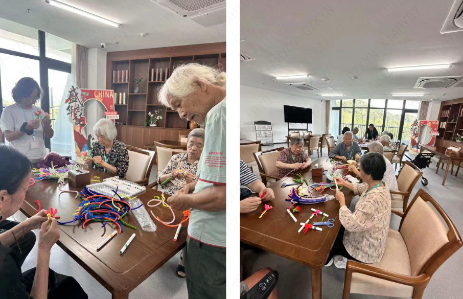 段阿姨短住回家后特意回来提议:“上次做扭扭棒花给孙女们,她们可喜欢了!”在工作人员指导下,长者们巧手制作扭扭棒花,为家园增添一抹亮色。