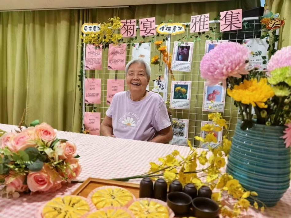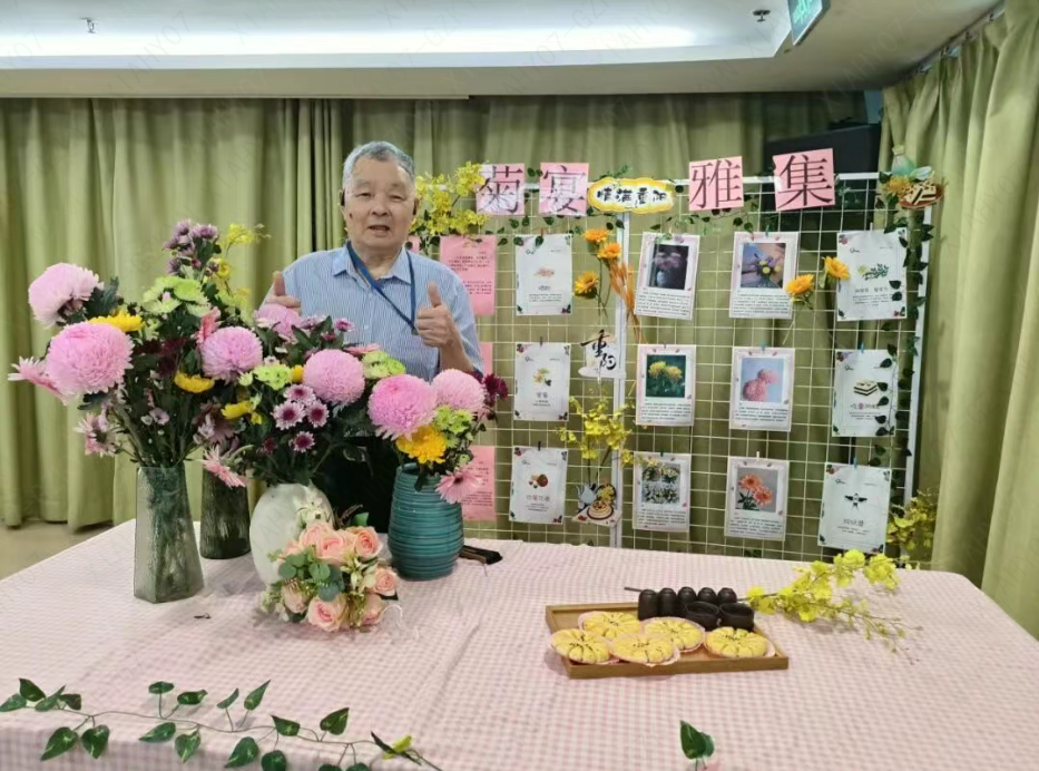 这场菊宴雅集,以"五感体验法"为舟,载着长者们穿梭于菊花的形色香韵间,又借诗词与花艺,织就了一张温情脉脉的网。重阳的暖意,不仅在菊花茶的热雾里升腾,更在叔叔阿姨们彼此陪伴的时光中,悄然沉淀为心底恒久的温柔。