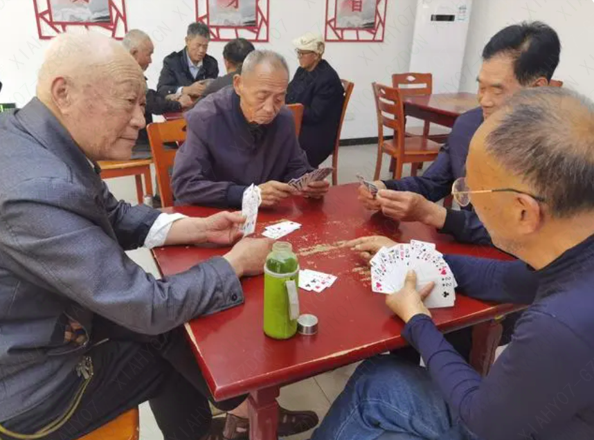 在三塘村居家养老服务站棋牌室打牌的老人们。新华社记者朱旭东 摄